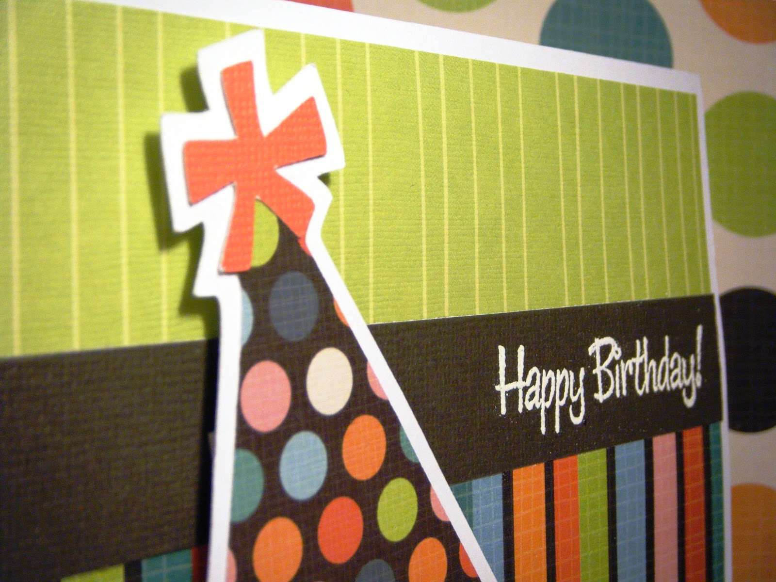 I cut the party hat from SFTN at 4.5" and added it with foam dots for dimension. The card measures 5" x 6.5". The stamp is from The Paper Studio by Hobby Lobby. I stamped it in white, then embossed it to help it show up better.